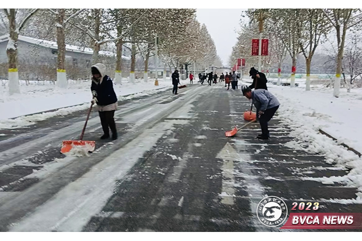 应对大雪天气,后勤保障部提前部署、划分区域,组织内保、外保四校区共103余名物业人员迅速集结,高效分工,采用人工扫雪的绿色方式,以推、铲、扬、堆各种办法快速扫雪除冰。在零下4度的天气下大家不畏严寒、埋头苦干,齐心协力、紧密协作,以实际行动促道路畅通、保校园安全。经过两个多小时的奋战,在师生上班上学早高峰来临前,四校区公寓楼、教学楼、食堂周边等主要道路的积雪已被清扫干净,“绿色通道”顺畅打通。