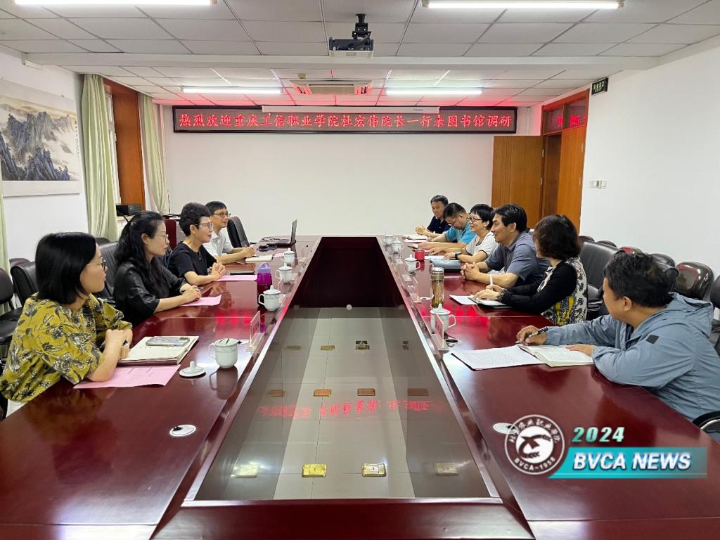 5月24日上午,重庆工信职业学院党委副书记、院长杜宏伟,党委专职副书记吴瑶,现代教育技术中心(图书馆)负责人,现代服务学院负责人一行4人,到Beat365长阳校区图书馆参观交流。学校副院长程文华接待,图书馆相关负责人参加座谈和接待。