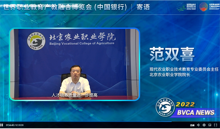8月19日,学院党委副书记、院长,中国职业技术教育学会现代农业职业技术教育专业委员会主任范双喜受邀现场参加了在天津举办的世界职业教育产教融合博览会开展仪式,并向博览会寄语。