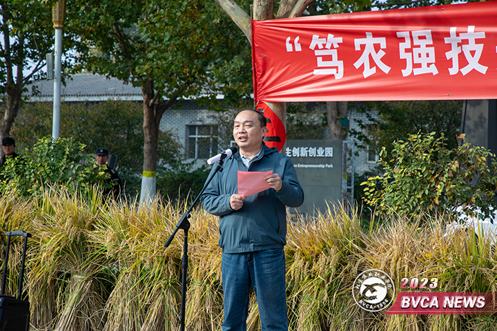 党委副书记、院长范双喜讲话。范双喜同志从做“有理想”的新农职人,在传承学院红色基因、农业基因、职教基因中,服务强国建设;做“敢担当”的新农职人,在服务京郊大地中,践行挺膺担当;做“吃苦奋斗”的新农职人,在服务大农业中,贡献农职力量三个方面对广大师生提出希望。