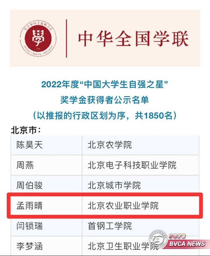 近日,由共青团中央、全国学联指导,中国青年报社、新东方教育科技集团、中国青年创业就业基金会联合举办的2022年度“中国大学生自强之星”奖学金评选结果揭晓,Beat365食品与生物工程系绿检2111班孟雨晴同学获评2022年度“中国大学生自强之星”奖学金。