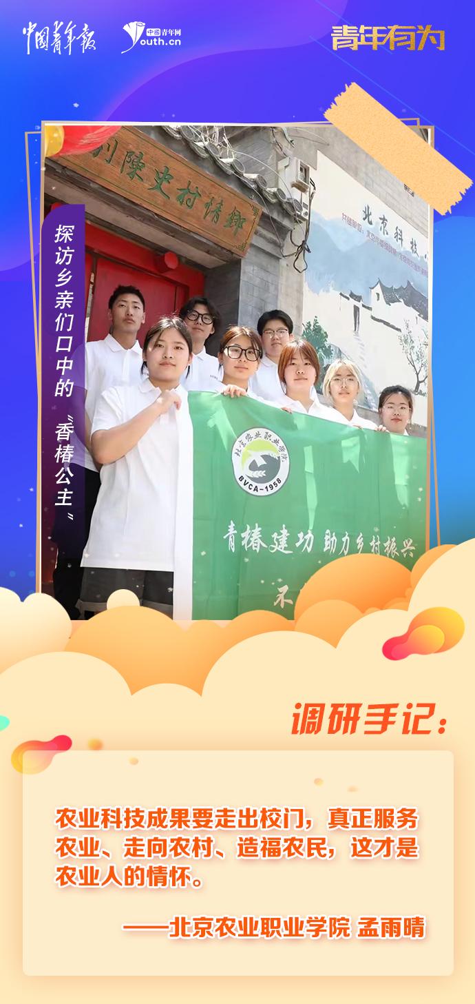 她通过与“椿”结缘,扎根乡村,服务村民,成为了一名“新农人”。3年来,她带领团队不断提升苇子水村的知名度,带动当地产业的转型升级,促进当地经济和旅游产业的发展,提升村民收入,累计服务人口数量约1000人,累计带动人口数量约500人,累计提供就业岗位约100人。2022年苇子水村产值高达约800万元,户均年收入由2万元左右增加到5万元左右,相关事迹被中国教育电视台CETV4“职教中国”报道。