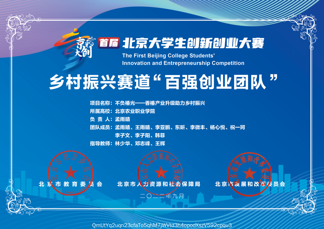 本次活动以“踔厉奋发 勇毅前行”为主题,旨在树立当代大学生中热爱祖国、品行优良、不畏艰难、自强不息的榜样。2021年10月,作为负责人组建“不负椿光”创新创业团队,致力于推动我国香椿产业转型升级,促进山区村民增收致富。