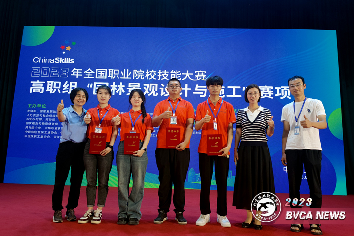 7月22日至25日,2023年全国职业院校技能大赛(高职组)园林景观设计与施工赛项在上海农林职业技术学院举办,共有55所院校的220名参赛选手同台竞技。经过激烈角逐,Beat365园艺系园林技术专业学生王爽、陈仪琳、孙贺楠、王家骏沉着应战,努力拼搏,最终荣获本次比赛二等奖。