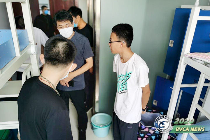 为保障迎新工作的顺利进行,真正做到让学生满意,让家长放心,迎新当天,学院党委书记李云伏、院长范双喜、党委副书记冯学会、副院长程文华等院领导视察指导各校区迎新工作,了解新生报到情况。学院各校区按照“一站式”服务原则,招生就业处、宣传部、信息中心、教务处、学生工作部、图书馆、后勤处、团委、财务处、安全稳定工作处等部门协同联动、精心组织、密切配合,以高度的热情和周到的服务喜迎新同学。学院领导慰问远道而来的家长和同学,耐心解答家长们的问题。关怀学生志愿者和一线工作者,对秩序井然的迎新工作给予了充分肯定,并且勉励大家要进一步注重细节、真诚服务,做好各方面的迎新接待工作。随后学院领导走访宿舍,看望2020级新生,亲切地与同学们进行交流,询问大家进校后的感受,同时学院领导还对宿舍电器以及宿舍卫生进行检查,排除可能发生安全问题的隐患。为落实学院疫情防控工作要求,做好新学期返校学生的餐饮保障工作,学院领导深入学生食堂检查指导新学期餐饮服务准备工作,仔细检查了各食堂的就餐环境、后厨卫生、原材料仓库等。学院领导对学生食堂新学期开学准备工作表示满意。在详细了解各校区在今年迎新中采取的新方法、新举措后,院领导对在迎新一线工作的师生给予了充分肯定,勉励他们要继续保持饱满的热情,为新生和家长提供最优质、全方位的服务。
