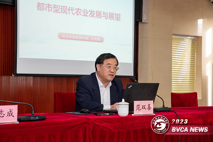 范双喜教授以“都市型现代农业发展与展望”为题,运用大量生动的案例、详实的数据从国外都市农业发展趋势、北京都市型现代农业发展特点,都市型现代农业发展模式借鉴三个方面对都市型现代农业进行了综述和展望。结合“叶菜品种选育及技术集成创新与应用推广”项目,分享了科研经历,鼓励广大师生始终牢记科技强国、教育强国、农业强国职责使命,“厚植爱农情怀、练就兴农本领”,在乡村振兴的大舞台上建功立业。