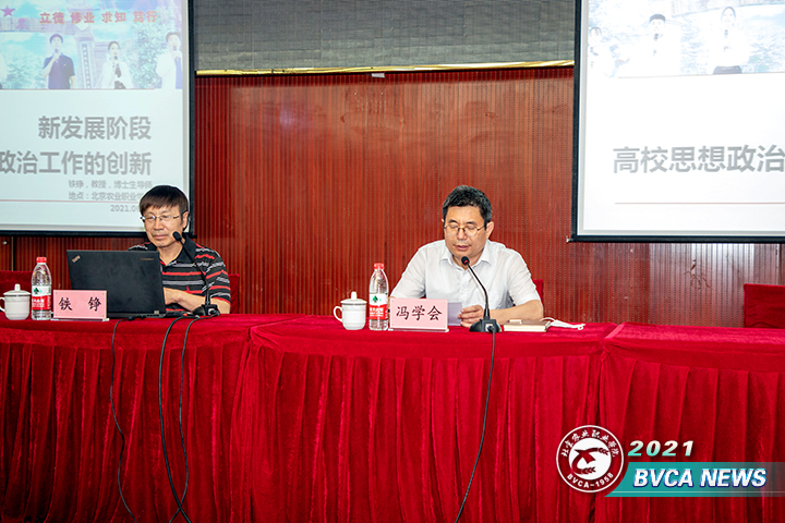 6月9日下午,学院召开思想政治工作报告会。北京林业大学博士生导师,北京高校新闻与文化传播研究会常务副理事长铁铮教授做了题为“新发展阶段高校思想政治工作创新”的讲座。各党总支书记、直属党支部书记、党支部书记、思政课教师、辅导员,以及党政办、纪委(监察专员办公室)、组织部、宣传部、工会、团委、离退休管理处、学生工作部、安全稳定工作处等全体工作人员参加。党委副书记冯学会主持报告会。