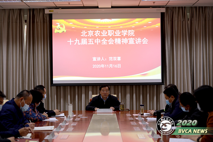 按照学院党委统一部署,11月16日下午,学院党委副书记、院长范双喜就学习贯彻党的十九届五中全会精神作宣讲报告。党政办、教务处、科研处、审计处、督导室全体党员参加学习。