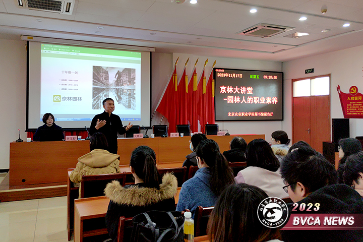 京林园林工程师学院院长王超以“十年”为题,回顾了京林集团的发展过程,讲解了自己创业的理念和对做人做事的认识;介绍了企业用人需求和用人标准;对同学们的就业前景、能力提升做了全面的指点。京林人力经理赵红玲对今年的企业招聘做了宣讲。