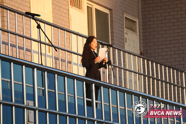 11月6日清晨,学院在长阳校区田径场开展国旗下晨课。党委常委、副院长杨博出席,学生工作部、各系部负责同志和学工部、团委相关工作人员、各系部学办主任(团总支书记)、辅导员、班主任及全体在校学生、南阳农业职业学院的师生们共同参加。