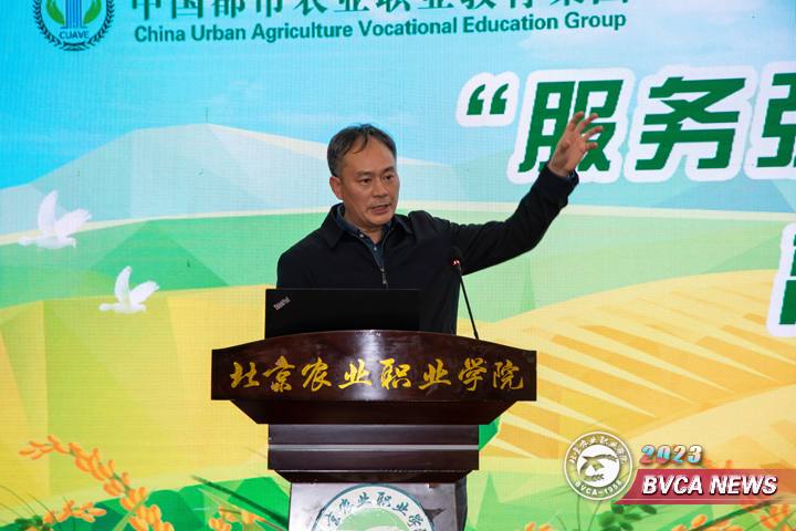 院领导王晓华做《“五位一体”服务乡村振兴模式打造与探索》专题报告。介绍了学校发挥职教和农业行业复合功能,主动适应首都城市战略定位、京津冀协同发展战略的新形势和新要求,以“政校行企”为载体,构建“五位一体”服务乡村振兴育训服体系,为首都经济社会发展及乡村振兴提供了有效的人才支撑、科研支持与社会服务,开创农业职业教育服务乡村振兴的成功实践。