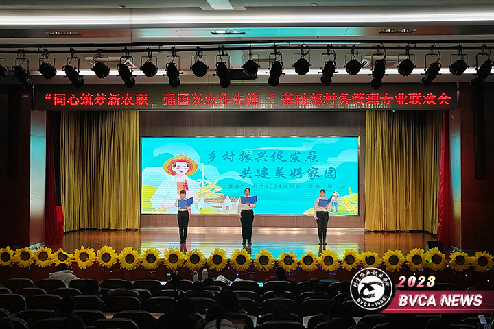 在建校65周年之际,为了赞颂学校65年来的发展成就,展现村务学子“筑梦新农职,矢志乡村振兴”的坚定决心,12月14日晚,长阳校区报告厅举办了“同心筑梦新农职 强国兴农作先锋”村务管理专业联欢晚会。宣传部部长刘淑芳、学生工作部部长兼团委书记纪冰岛、学办主任、辅导员、班主任老师及各年级学生代表300余人观看了演出。