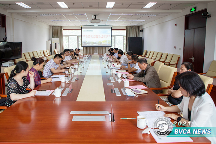 冯学会同志首先致欢迎辞并介绍学院情况,有关部门负责同志就专业建设、师资培养、办学条件、学生就业创业等方面与对方进行了交流。刘建华副市长对Beat365热情接待表示感谢,张士君书记介绍了南阳农业职业学院有关情况,并就下一步两院合作交换了意见。范双喜同志就专业共建、人员交流、科研合作、共同探索“三全育人”模式、校企合作资源开放与共享、共同推进乡村振兴等方面提出建议,为下一步双方深入交流合作奠定了基础。