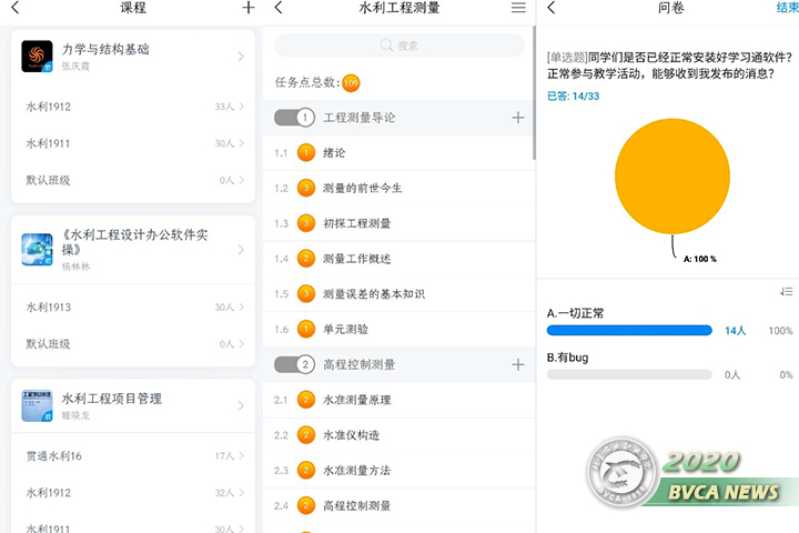 专业积极响应市教委“停课不停学”的号召,在学院和系部的领导下,积极筹备延期开学期间各项教学准备。所有水利专业任课教师,都认真学习了教务处组织的“学习通”和“泛雅网络教学平台”的网络教学实操培训,本学期所有课程都已在平台搭建完成。教师们认真研讨、精心设计,设置了速课、视频、讨论、考核等教学互动环节,高标准、严要求,确保教学有序开展。专业主任以团队教师身份加入所有网络课程,实时了解课程内容、课程建设进度等情况。