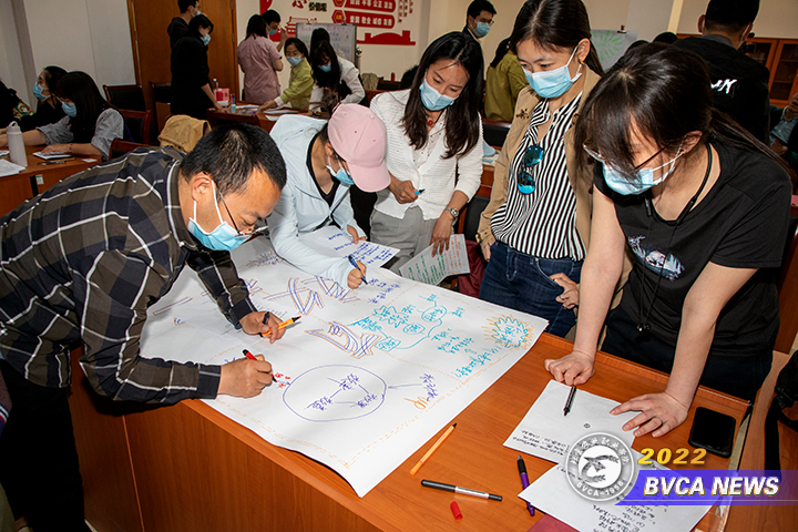 赵晨霞教授结合学院双特高建设、办学定位和职教特色,主要围绕“明确职教改革方向、理解三教改革内涵、体验教学组织实施和践行有效课堂”四个方面,就职教最新理念、职教改革的新变化、如何深化三教改革、教学组织如何实施和如何践行有效课堂等进行了深入浅出的讲解和剖析。随后,赵晨霞教授组织参会教师进行了角色转换,以分组形式践行互动教学情境,现场实施了学习站法、海报法和自由市场评价法等三种教学方法,最后各组代表做了小组汇报,培训取得了良好的效果。