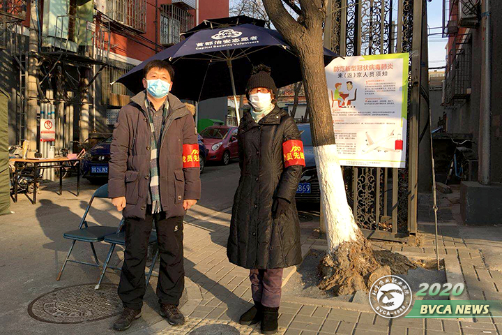 在职党员戴着口罩与社区工作者开展疫情防控摸排、宣传、劝导工作。对小区人员进行返京信息、健康状况等登记;检查出入证、测量体温;发放疫情防控宣传资料。提醒小区居民出门戴口罩,回家勤洗手,做好个人卫生、家里多通风,劝导居民少外出、不串门、不访友、不聚会、不聚餐,做好疫情防护工作。