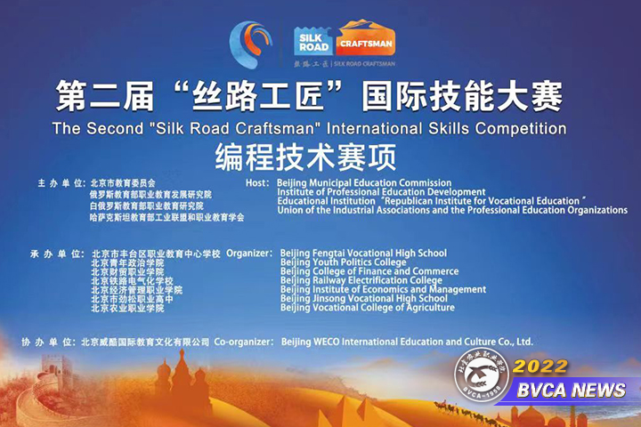 第二届“丝路工匠”国际技能大赛由北京市教育委员会、俄罗斯教育职业教育发展研究院、白俄罗斯教育部职业教育研究院、哈萨克斯坦教育部工业联盟和职业教育学会主办,设有“编程技术”在内9个赛项,大赛采用线上形式,国内国外学生同台竞技。
