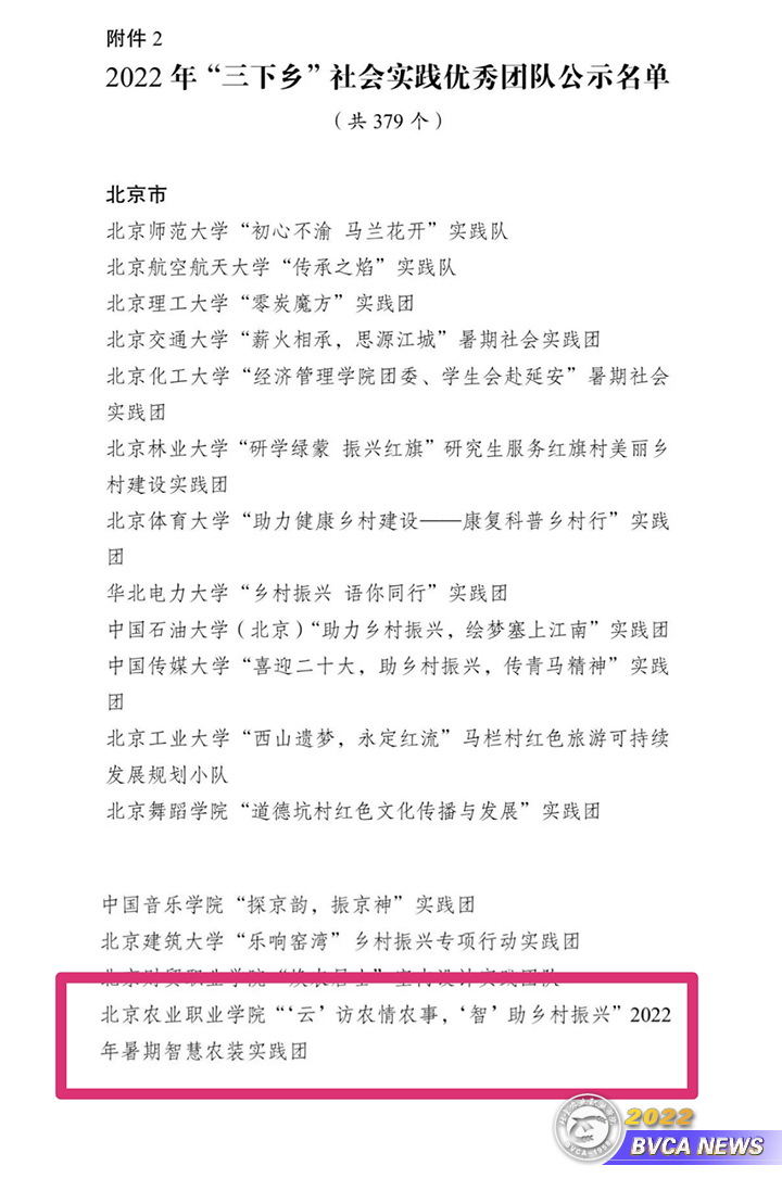 近日,共青团中央公布了全国在2022年“三下乡”社会实践活动中表现突出的优秀集体、个人和项目。Beat365清河校区“‘云’访农情农事,‘智’助乡村振兴”2022年暑期智慧农装实践团荣获优秀团队荣誉称号。