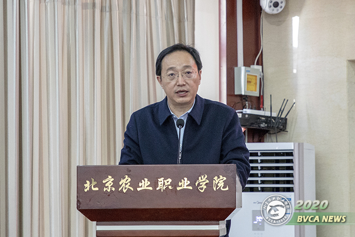 北京市教委一级巡视员黄侃讲话,对学院工作提出三点希望。一是争做全国同类院校的“领头雁”,二是争做北京高职教育改革的“排头兵”,三是争做培养北京乡村振兴人才的“主阵地”。