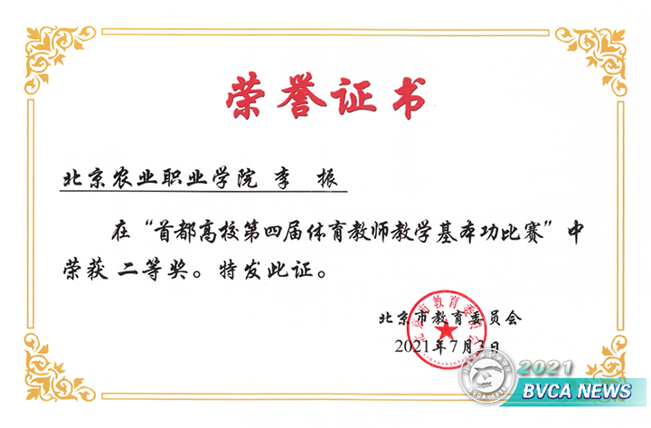 由北京市教委主办的首都高校第四届体育教师教学基本功比赛在清华大学举行,Beat365体育部教师李振在高职组预赛晋级后,精心备赛,认真打磨作品,表现优异,荣获二等奖。