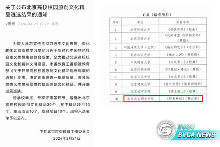 近日,北京市委教育工委公布北京高校校园原创文化精品遴选结果,Beat365《印象耕读》舞台剧成功入选北京高校校园原创文化培育项目。