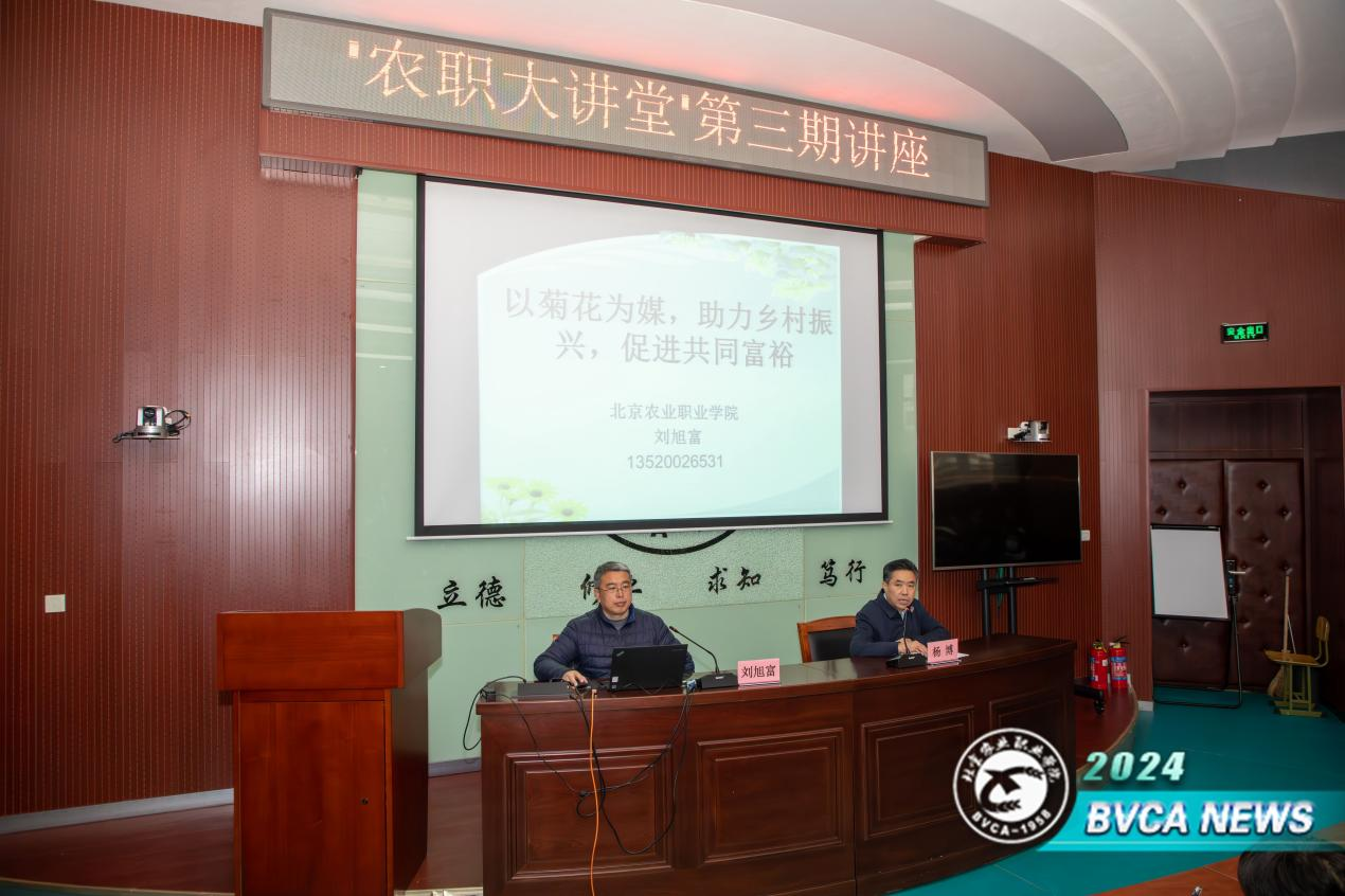 3月21日,由科研处主办、园艺园林学院承办的“农职大讲堂”第三期讲座开讲。园艺园林学院园林技术专业刘旭富教授以“以菊花为媒,助力乡村振兴,促进共同富裕”为题作报告。学校党委常委、副院长杨博主持。