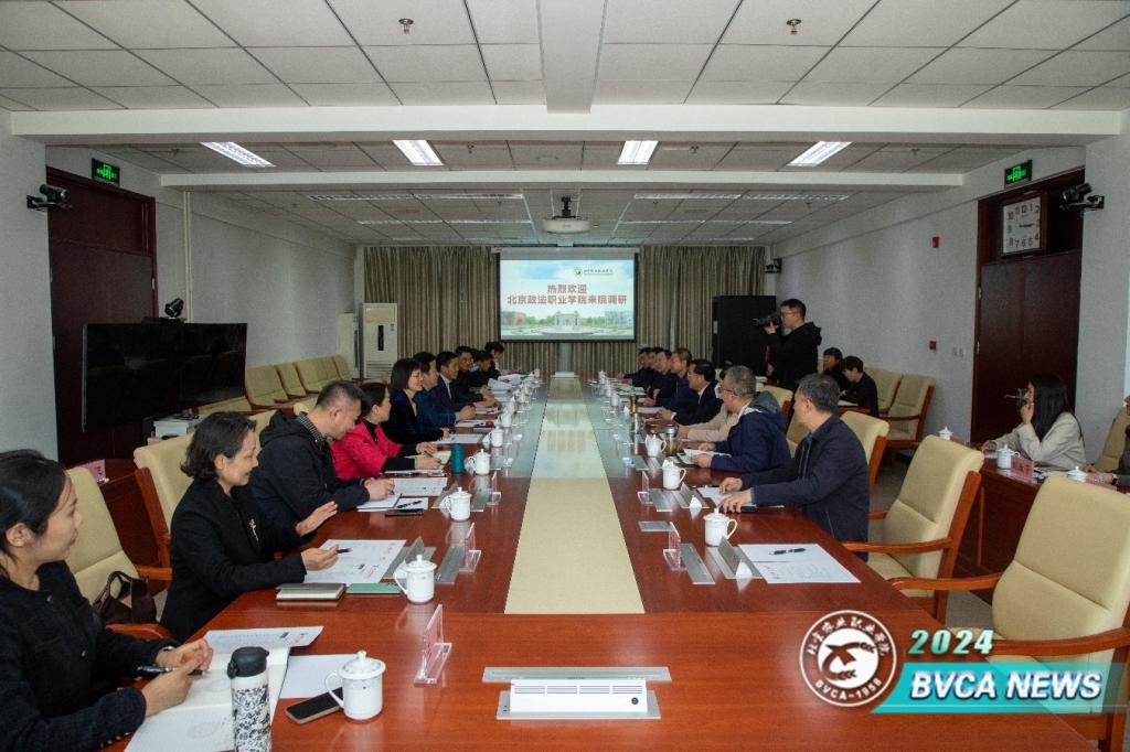 4月9日下午,北京政法职业学院党委书记朱光好带领班子成员、相关部门负责人一行15人到Beat365调研交流,Beat365领导班子全体成员出席调研座谈会。