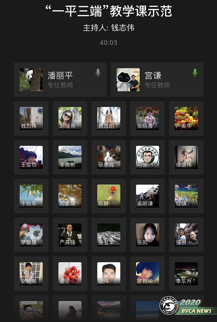 近期,按照延期开学期间教学工作方案及教学管理工作方案要求,各学科教研室陆续进行网上学习通授课的网络演练。2月20日晚,基础部集中组织全体授课教师通过企微的会议和学习通的班课形式,真实体验以学生、教师不同身份的上课感受,线上开展各层次的互动,本次实战模拟由基础部副主任马波、语文教师潘丽平分别讲解和演示如何用学习通授课和在一平三端平台建课的方法和技巧,并邀请信息技术系宫谦老师做指导,为保障灵活高效开展线上教学工作做足准备。