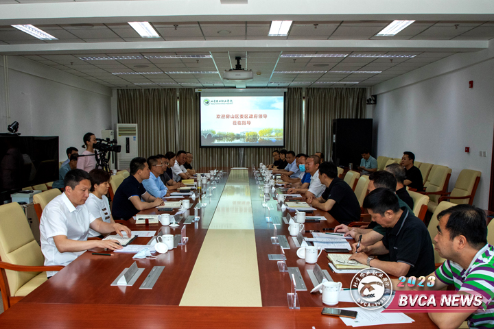 6月8日下午,房山区委常委、区政府副区长周同伟率领良乡大学城管委会、长阳镇政府主要领导,区教委、区住建委、房山交通支队、市规自委房山分局、区农业农村局主管领导等一行来学院交流调研。院党委书记周志成、副院长程文华及有关单位和部门的负责同志参加。