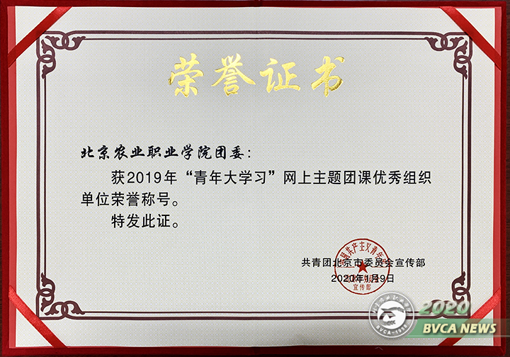 2019年,院团委在学院党委的坚强领导下,持续深入推进“青年大学习”网上主题团课学习,成绩显著,被团市委评选为2019年“青年大学习”网上主题团课优秀组织单位,全市72所高校中仅有10所高校获此殊荣。