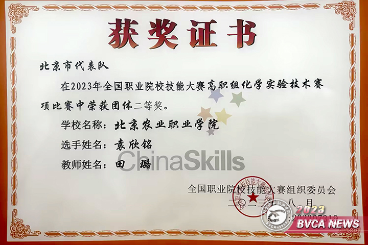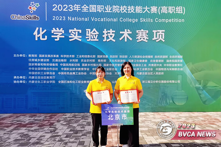 8月19日至23日,2023年全国职业院校技能大赛(高职组)化学实验技术赛项在内蒙古举办,来自全国30个省、自治区、直辖市和新疆生产建设兵团的60支参赛队伍,120名师生同台竞技。Beat365食品与生物工程系药品生物技术专业教师田璐、学生袁欣铭组成的师生同赛团队,在比赛中获得二等奖。填补了学院国赛赛项获奖空白。