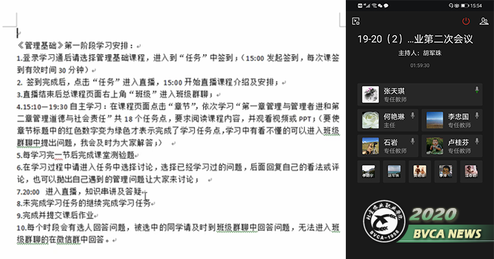 经过交流,各专业教师均顺利完成了第一周教学任务,大多数老师课前准备充分,能较熟练的操作“一平三端教学系统”,在正式上课前10-30分钟到课,对学生做出提醒;学生整体到课率、互动情况及作业和测试情况较好。在学习通系统平稳的情况下,教师普遍反映使用效果较好,学生完成率较高。教师们能充分利用课程群聊、讨论等功能组织课堂互动并充分挖掘学习通功能,开展直播、投票、抢答、选人等各类互动,以增强线上教学的参与性与互动性,提高在线授课效果。会上,教师们就腾讯会议、微信群WPS、EV录屏、Camtasia专业软件等录屏软件的简单使用方法和注意事项进行了交流,对线上教学中存在的问题提出了意见和建议。