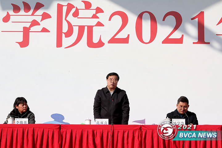 范双喜同志致开幕词,他肯定了学院长期以来在学生体育活动和体育教育教学方面取得的成绩,希望运动员们赛出风格、赛出水平,希望裁判员们切实做到公平公正,希望大家大力发扬奉献精神,在全院掀起强身健体的热潮。同时,希望全院师生以饱满的激情,昂扬的斗志,勇于拼搏的信念,团结向上的精神投入到本次运动会中去,并预祝2021年师生运动会取得圆满成功。