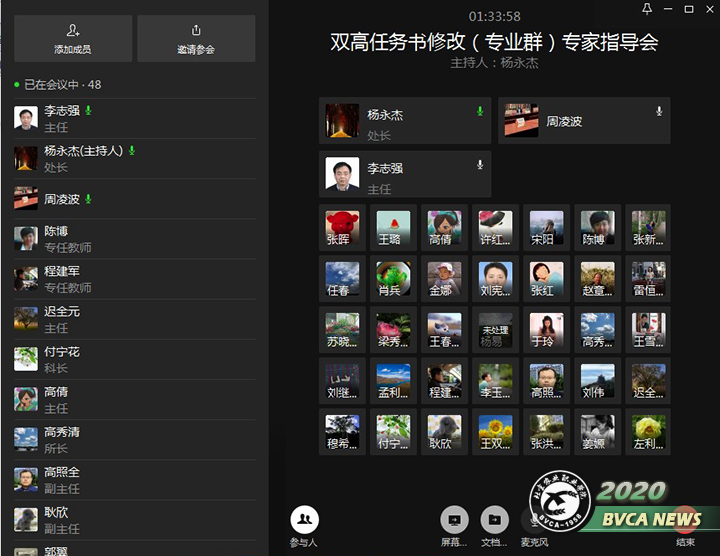 根据教育部、北京市教委关于“双高计划”建设方案和任务书修订备案的通知精神,教务处邀请星空书院周凌波院长,分别于3月22日、3月27日就“双高校”建设任务书修订、完善召开了系列远程指导会。会议采用企业微信音频会议模式进行,双高项目各建设任务负责人及参与建设方案及任务书编写工作的48名同志参加远程指导会。会议由教务处长杨永杰主持。