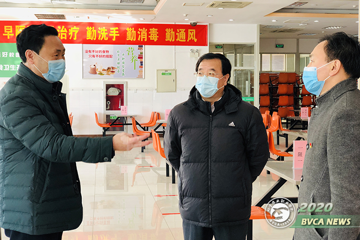 2月17日上午,党委副书记、院长范双喜在南校区学生餐厅检查疫情防控工作,后勤管理处负责人随同检查。