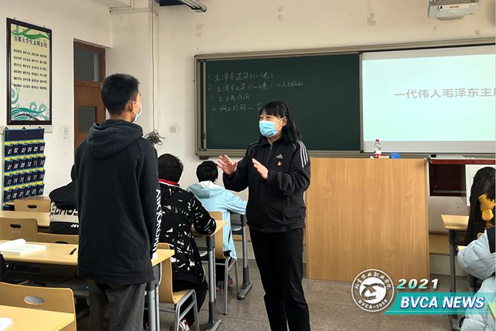党委常委、副院长李俊英走进园艺2113班的思政课堂,以“伟人毛泽东主席”为题,给学生带来一堂精彩纷呈的思政课。以“你所了解的毛泽东主席”设问,引发学生思考。从“中国共产党的创始人之一”“新中国的主要缔造者”“中国人民解放军的主要缔造者”三个层面展开讲解,结合自身经历进一步论证了在以毛泽东同志为核心的党的第一代领导集体的领导下的中国巨变。最后,李俊英同志希望同学们进一步加强政治理论学习,在思想上、政治上、行动上同以习近平同志为核心的党中央保持高度一致。