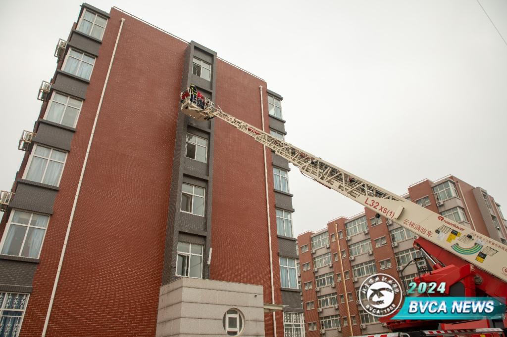 本次演练模拟学生公寓2号楼3层起火,烟雾触发感烟探测器报警。宿管老师确认火情后,立即上报中控室并启动应急预案,同时打开疏散门。随着警报声响起,消防广播启动,2号楼学生用湿毛巾捂住口鼻,在现场工作人员指引下,快速有序从楼梯撤离到2号楼东侧空旷场地。演练中,安全稳定工作处人员迅速赶到现场,部署疏散、灭火、救援、搜救和警戒工作。微型消防站接到报警后,迅速赶到现场,进入楼内开展灭火、救援、搜救、疏散工作。房山区消防救援支队接到指挥中心调派后,立即出动1辆消防车、1辆消防高层救援云梯车及5名消防救援人员赶赴现场进行处置。他们第一时间拉起警戒线,疏散人群,维护现场秩序。经过全体演练人员的不懈努力,“火势”被成功扑灭,消防员借助云梯车将5层楼道内2名“被困”学生成功转移到地面。整个演练过程规范、有序、顺畅,达到了预期效果。