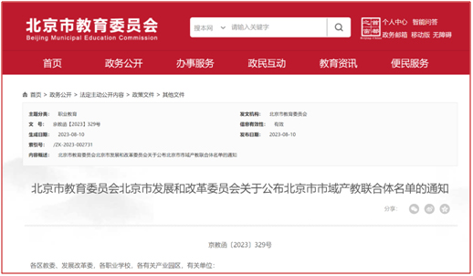 8月10日,北京市教育委员会、北京市发展和改革委员会发布《北京市教育委员会北京市发展和改革委员会关于公布北京市市域产教联合体名单的通知》(京教函〔2023〕329号),学院牵头申报的“农业中关村园区市域产教联合体”经综合评议、社会公示等程序,被确定为北京市市域产教联合体,学院校企合作产教融合再上台阶。