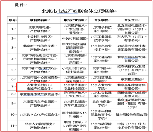 “农业中关村园区市域产教联合体”以平谷国家农业科技园区为依托,北京嘉华种猪育种有限公司为核心,旨在以教促产、以产助教。此次北京市共计确定11个市域产教联合体,是北京市教育委员会、北京市发展和改革委员会落实《教育部办公厅关于开展市域产教联合体建设的通知》(教职成厅函〔2023〕15号)的具体举措。学院将以联合体建设为契机,持续深化产教融合、产学合作,不断提升办学水平,全力服务北京市农业中关村建设和北京“四个中心”建设。