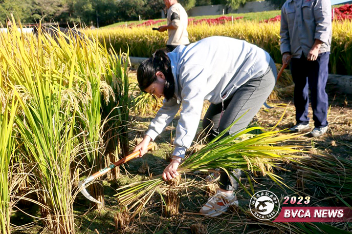 劳动实践环节,后勤管理处精心安排,在学院耕读教育基地开辟专门区域供学员开展农事劳动活动,柏根才处长及多位实践指导老师全程保障,进行安全培训和实操培训,并指导学员们进行水稻收割和打捆、挖红薯、摘花生。青马班学员纷纷撸起袖子加油干,现场一片热火朝天的劳动场景,通过沉浸式的劳动享受劳动之快乐,分享丰收之喜悦。