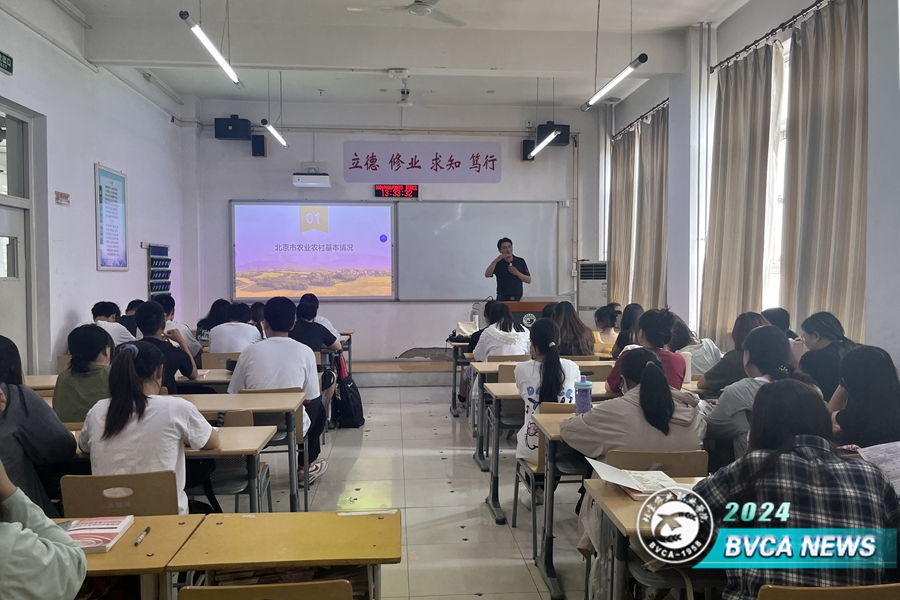 6月6日,副院长程文华以“聚焦乡村振兴 赋能服务京郊”为主题为动物科技学院牧医2312和2313班学生讲授思政课。他系统梳理了北京农业农村基本情况,并向同学们详细介绍了学校近年乡村振兴工作情况以及在首都乡村振兴工作中做出的突出贡献,使学生更加坚定了专业自信和职业自信。