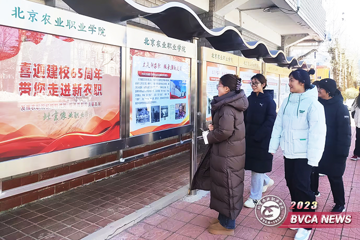 香山校区组织在校师生观看“喜迎建校65周年 带您走进新农职”宣传栏,师生们为学校取得的成绩感到喜悦和自豪,面向新农职新使命的美好未来,信心百倍。