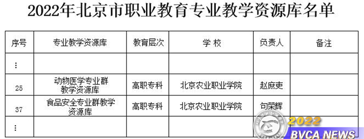 近日,北京市教委公布了2022年北京市职业教育专业教学资源库名单。学院动物医学专业群、食品安全专业群2个教学资源库入选。2023年春季,资源库将更新完善各类资源,在北京市职业教育智慧平台上线。此次遴选由市教委组织开展,经各职业院校申报、网络评审、综合评议最终有60个专业教学资源库入选。