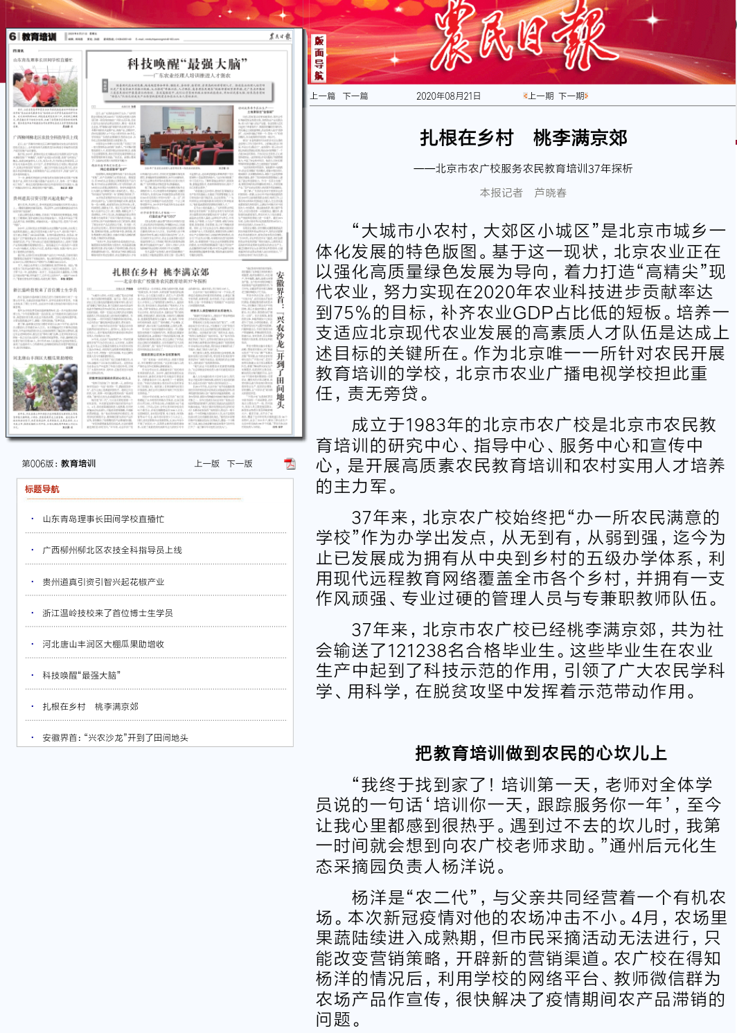 成立于1983年的北京市农广校是北京市农民教育培训的研究中心、指导中心、服务中心和宣传中心,是开展高质素农民教育培训和农村实用人才培养的主力军。
