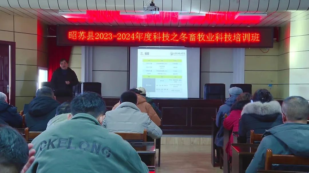 为进一步提升基层畜牧兽医工作人员专业素质和服务能力,1月23日至1月30日,昭苏县畜牧兽医发展中心举办2023-2024年度科技之冬畜牧业科技培训,助推畜牧产业提质增效。来自各乡镇兽医站兽医骨干、畜牧兽医社会化服务公司从事诊疗的兽医和兽药店从业人员50余名参加此次开班培训。