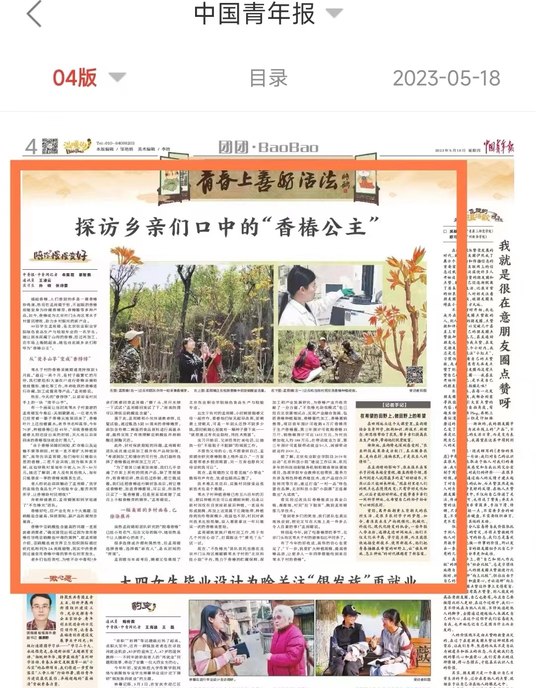 很多选择或许都有偶然性,但孟雨晴选择香椿、选择做“新农人”,是长时间的“密谋”。