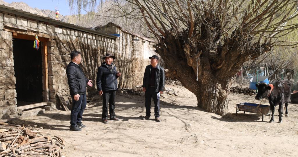 坐落在拉萨河谷协荣村,位于拉萨城市曲水县才纳乡,距离拉萨城区30余公里,四周高山环绕着大片的田野和清澈的溪流,这里气候宜人,四季分明。三月初,刚从北京返回拉萨工作岗位上的高立群第一时间就来到了村里。刚进村,高立群就碰到了珠啦,“格拉,你女婿的工资拿到了吗?”“多切啦,多切啦,拿到了,拿到了!”珠啦看到高立群立马迎上去,邀请他到家里坐坐。