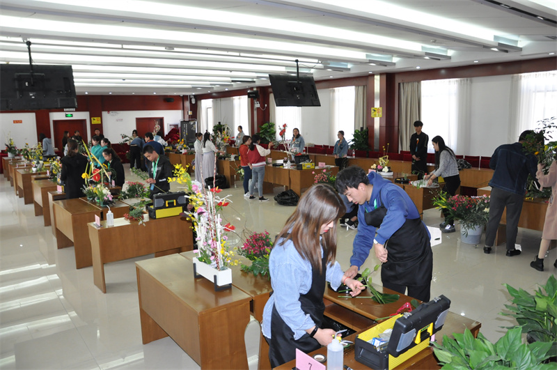 ↑校内基地开展插花比赛