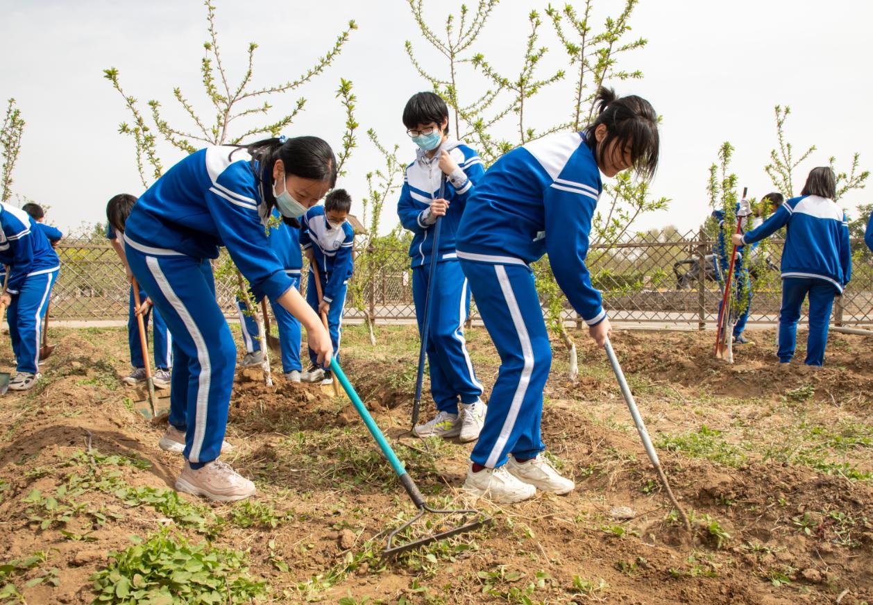 在程建军的指导下,学生们纷纷挥锹上阵,不一会儿,一排排浅坑便挖好了。“常听家里长辈讲年轻时干农活的故事,但我却从来都没摸过铁锹、种过地。这次体验农民伯伯的日常耕作,感觉特别有意义!”学生张翯和同学按照步骤分工协作,往浅坑里铺上一层粪肥和树叶杂草,再培上一层土,用铁锹轻轻搅拌拍平。大家尽管忙得满头大汗,却干得起劲儿。