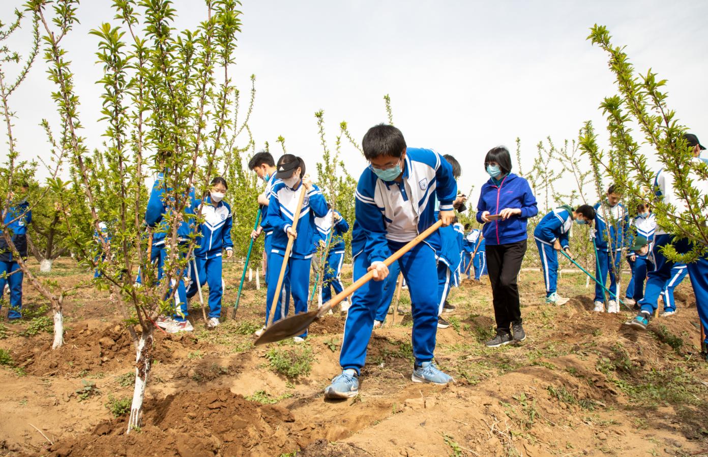 “想要种出又大又甜的蜜桃,施肥很关键,其中有不少讲究。”9时30分,农职院的一片桃树地里格外热闹,交大附中初二五班40余名学生正在学习给桃树施肥。农职院园艺专业副教授程建军手握铁锹,在距离桃树根部约半米的土里铲出一个浅坑。“老师,为什么要在距离根部这么远的地方施肥,直接放在根部不好吗?”一名学生探着头提问。“这个问题很好,涉及到植物根系的知识。”程建军边示范边讲解,“桃树的主根起到固定、储藏营养的作用,而分散在周围土里的毛细根才是吸收养分的关键部位……”